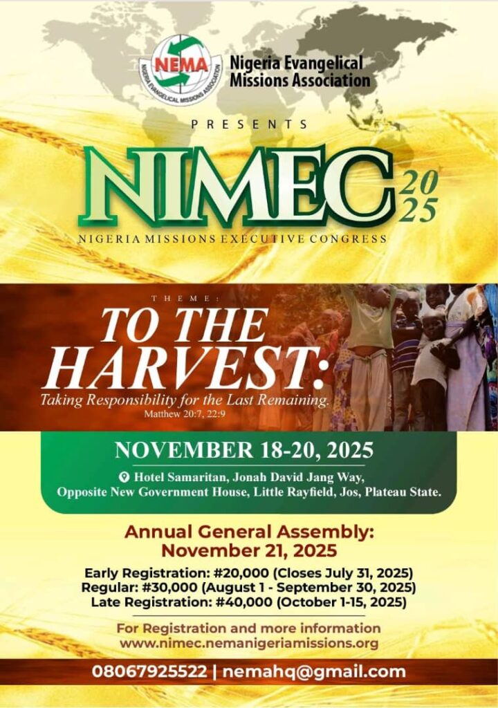 This year, NIMEC 2025 will serve as a strategic consultation, grounded in the findings of HarvestScope 3.0, NEMA’s latest research on the State of the Harvest in Nigeria. We will be spotlighting the unfinished task and mobilising national momentum toward completing it.